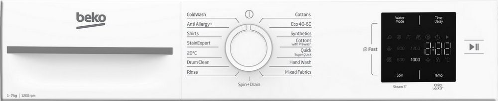 This washing machine also features Automatic Water Level Recognition, adjusting the amount of water used based on your load size – helping to cut down on both waste and energy bills. And with spin speeds of up to 1200 rpm, your clothes will come out drier and ready for faster drying.