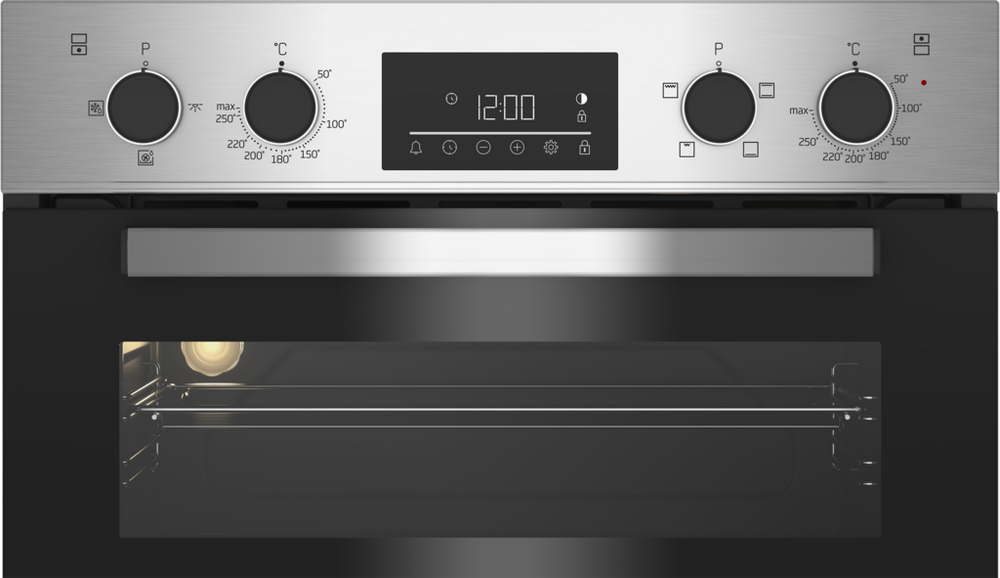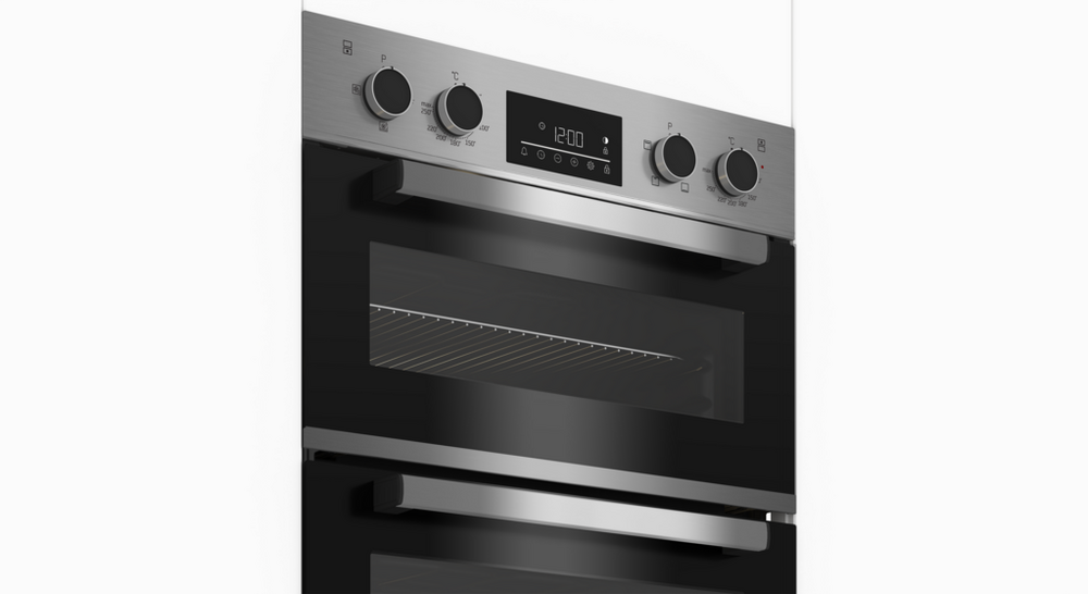 Are you looking to show off your culinary skills by hosting a dinner party. Or maybe you just have a large and very hungry family. Either way, the Beko CDFY22309X built-in double oven is perfect for cooking large quantities of food with minimal fuss.Key featuresFan oven with Fully programmable LED timerFully Programmable Touch Control LED DisplayNew design elements (display, knob, handle and décor)Catalytic Liners for easy cleaningSteamShine CleaningYour kitchen is the social heart of your home, and with this Beko double oven, you can invite more people to join in the party.The main fan oven distributes hot air throughout the cavity, ensuring even cooking results – perfect for roasting or baking. It also comes with a handy defrost function, and its five shelf, 75 litre capacity provides ample space for an impressive family meal. This oven comes with everything you need to get cooking right away, including two wire shelves and a full sized enamel cooking tray with an internal grill rack.The top convention oven features dial controls, two shelf options and a fixed integral grill. With a 38 litre capacity, it also provides a range of cooking options: choose from bottom heating, static function, low or electric grill to help you expertly create any type of meal. You’ll also find a wire shelf included when you purchase.This built-in model can be installed at eye level, which along with the internal bulbs in both ovens, will ensure you can keep an eye on your creations as they cook. Both top and bottom compartments of this Beko oven have been rated ‘A’ for energy, resulting in lower energy bills and less impact on the environment.New and Improved DesignThis redesign comes with a stylish update to knobs, handles and décor, plus a clever new display. The main oven features a fully programmable, easy-to-use touch screen LED display, so you’ll be able to choose your settings and time your meals to perfection.Quick, Hassle-Free Cleaning