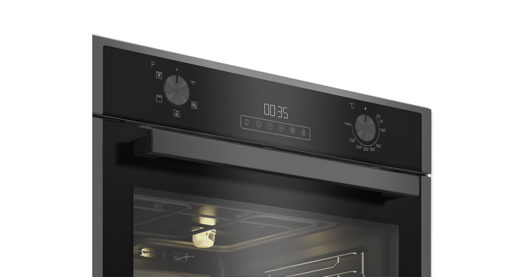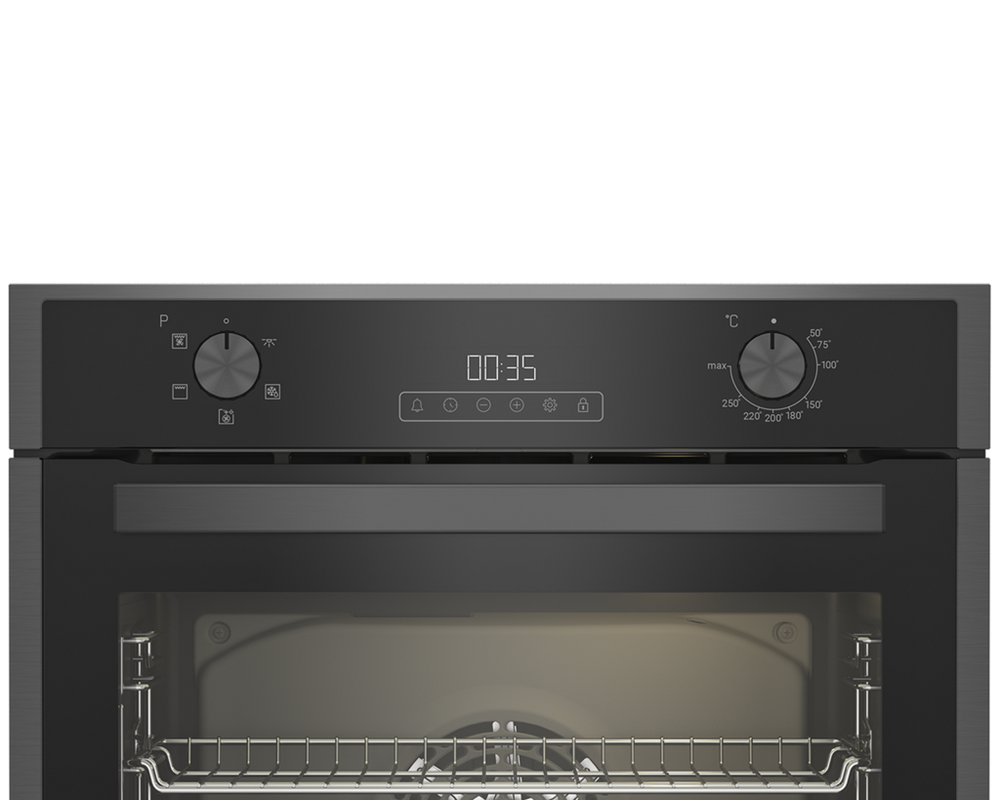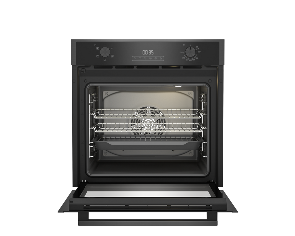 A generous 71L capacity on this Blomberg built-in single oven will provide more than enough oven space for any household. Choose from five functions that cover all cooking styles for complete versatility. The AeroChef technology ensures hot air is circulated throughout the entire cavity, to achieve even cooking across multiple levels. The modern touch-control LED timer is easy to use while the control knobs offer a seamless finish, just push in, and pop out. Key FeaturesAeroChef technologyTouch Control LED timerLarge 72L capacityProduct Dimensions (H x W x D)59.5cm x 59.4cm x 56.7cm