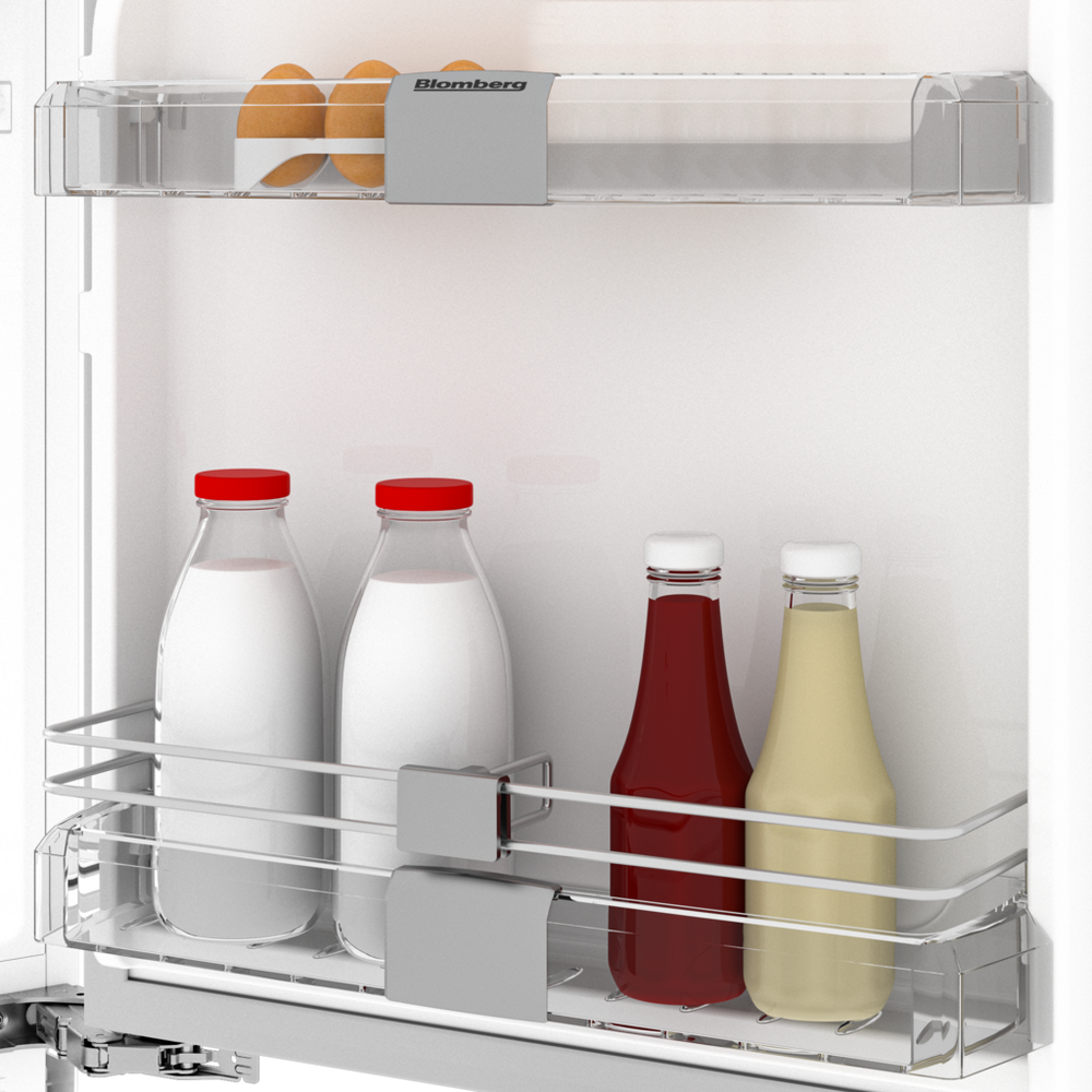 Take a look at this integrated larder fridge from Blomberg to maximise storage space in your kitchen. With three shelves and two door balconies, you’ll have plenty of space to arrange your groceries just how you like them. Key FeaturesTelescopic sliding shelfAdjustable shelvesLED LightingThe Selves are adjustable too for even more flexibility. There’s a salad crisper at the base for keeping all your fruit and vegetables crunchy and firm. A special shelf rolls out to let you access this with ease and helps lock in the freshness when the fridge is closed. The TSM1654IU also features LED lighting so you can find what you need quickly and easily.Features Telescopic sliding shelfAdjustable shelvesLED LightingProduct Type Larder FridgeDimensions & WeightDepth 54.5 cmHeight 81.8 cmShipping Depth 57.6 cmShipping Height 89.6 cmShipping Width 63.6 cmWidth 59.5 cmDesign ElementsColour WhiteColour Group WhiteInstallation GuideInstallation Type Built InWhite Goods FeaturesAdjustable Shelves YesDefrost Type Auto DefrostInterior Light Type LEDNo. Refrigerator Shelves 3Number of Refrigerator Door Bins 2Reversible Doors YesThermostat Available YesEfficiency & StandardCertifications & Standards CE-UKCAClimate Class SN/TEnergy Efficiency Class EProduct TypeProduct Category Group White GoodsBrown Goods & SDA FeaturesDefrost Function YesAdditional InformationWarranty/Guarantee 5 Years GuaranteeWarranty Redemption Information Guarantee must be registered within 90 days at https://www.blomberguk.com/support/register