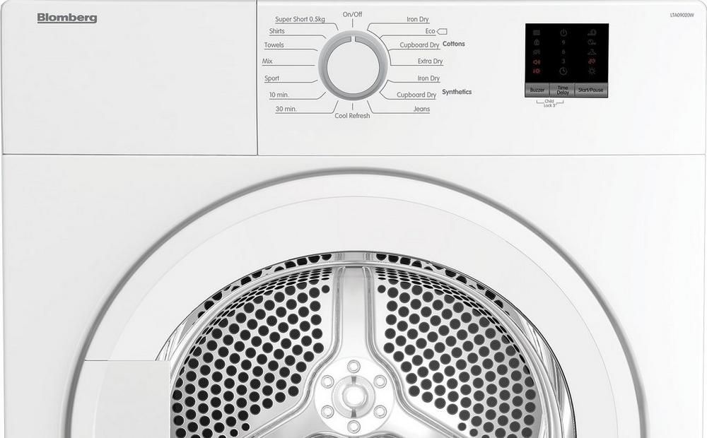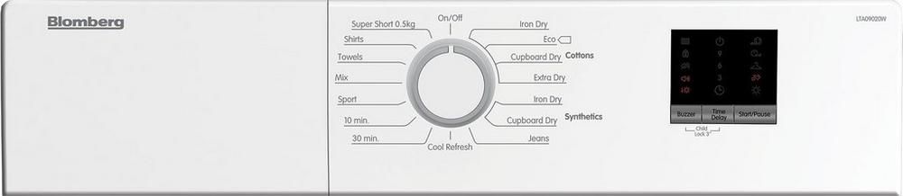 With 15 programmes and a 9 kg capacity, the freestanding LTA09020W offers great flexibility when it comes to doing the laundry. This model is exclusive to Euronics and Agent stores, so you won’t be able to purchase it at any other retailer.Key featuresAutomatic Anti-Creasing FunctionSensor programmes allow you to decide beforehand exactly how dry you’d like your laundry.Timed Programmes - pre-select the best drying duration for your laundry.Child Lock - For added safety and securityInterior Light illuminates the inside of the drum for added convenience when unloadingGreat ProgrammesChoose from 15 programmes – including Cottons, Synthetics and Sportswear – with the dial and buttons on the Blomberg LTA09020W. The range of time based options means you can pre-select the best drying duration for your load. There’s also a quick dry feature on this vented model, drying a 0.5 kg load in just 35 minutes – ideal for when you need that favourite outfit in a hurry.Save effort, time and money on energy bills while caring for your clothes. Decide how dry you would like your laundry beforehand, then let the clever sensor drying programmes detect moisture levels in the drum. When the desired dryness level has been reached, the LTA9020W will stop your cycle automatically.What’s more, the automatic Anti-Crease function will periodically tumble your laundry for up to two hours after the cycle has finished. Ideal for days when you can’t unload your laundry straight away, this function will also reduce ironing times.Making Drying EasierThe stylish dial and buttons on the LTA09020W help tumble drying function in harmony with your everyday life. With lint and water tank indicators, you’ll exactly know when your appliance needs maintenance. Plus, a child lock is also included, stopping little fingers from changing any settings.This Blomberg dryer also features an interior light, which illuminates the drum for additional convenience during unloading. Never lose a sock again and find sorting dry laundry a breeze.The classic white finish will make a seamless addition to any kitchen.Blomberg’s LTA09020W vented tumble dryer makes drying your laundry easier and quicker. Why not add one to your basket today. You can click and collect or Williams can offer delivery and recycling of an old dryer.