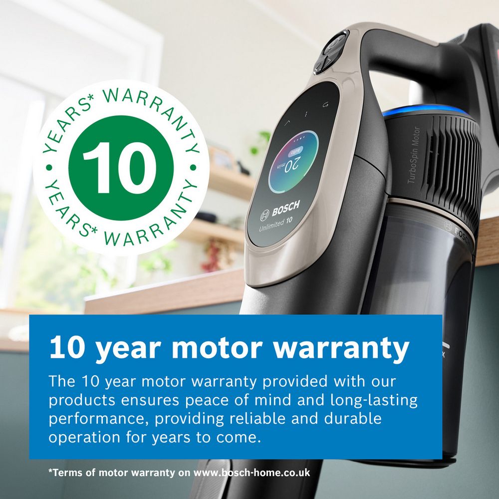 Experience next-level cordless cleaning with the Bosch Unlimited 10 BBS1041GGB Cordless Handstick Vacuum Cleaner. Designed with precision German engineering and crafted in a sleek graphite finish, this lightweight yet powerful vacuum offers up to 80 minutes of uninterrupted runtime thanks to its interchangeable Bosch Power for All battery system.