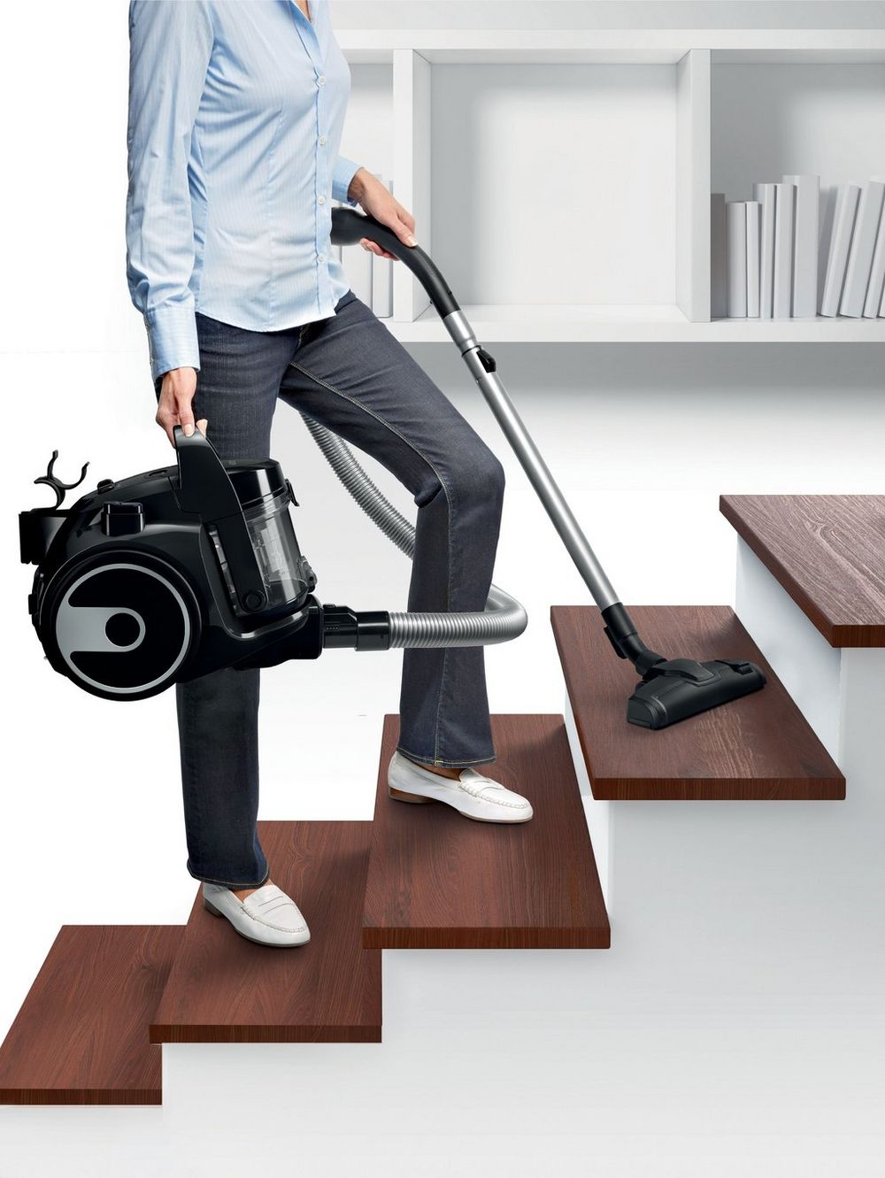 Enjoy a robust design combined with power cleaning with this cylinder vacuum cleaner from Bosch. Light, super-compact, and easy to store, the bagless BGS05BA2GB makes light work of cleaning your home. Powered by Air Cycle technology, double filtration removes fine dust particles, bacteria, and pollutants from your surroundings, helping you breathe easily and promoting good air quality. Key FeaturesAir Cycle technologyEasy clean systemSuper compactThanks to its space-saving design, storing it after use is simple and convenient. Plus, it’s easy to store the hose too. Available in black and coming with a combination, a universal, and a hard floor nozzle, whole-home cleaning is a breeze.