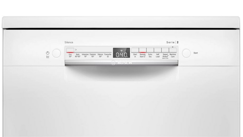 If you're in a hurry, the SpeedPerfect option reduces wash time by up to 65%. For a quieter operation, the Silence 50° setting minimizes noise to an absolute minimum. Plus, with Home Connect, you can control cycles, save favorite programs, and troubleshoot directly from your smartphone or tablet – just connect to your Wi-Fi to get started.