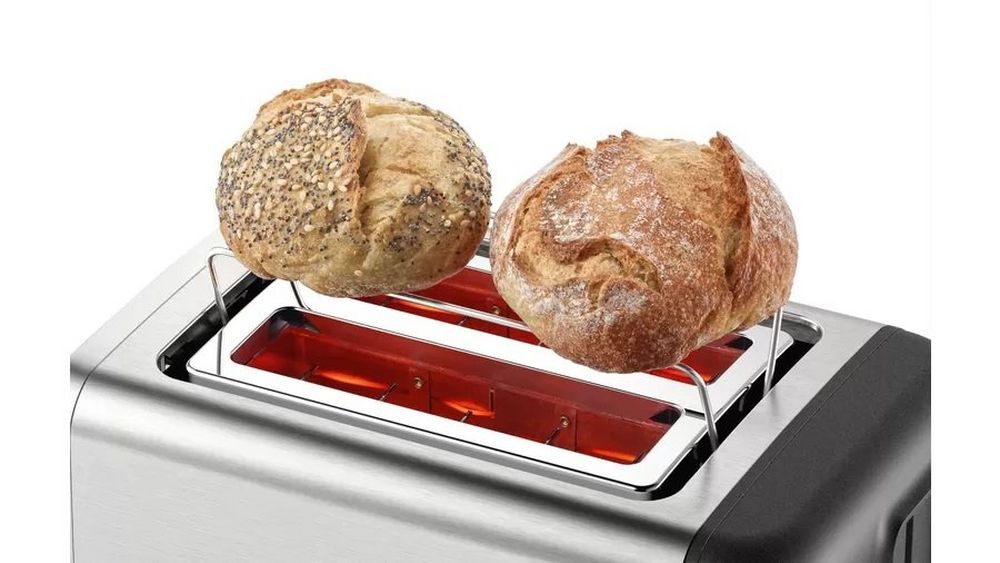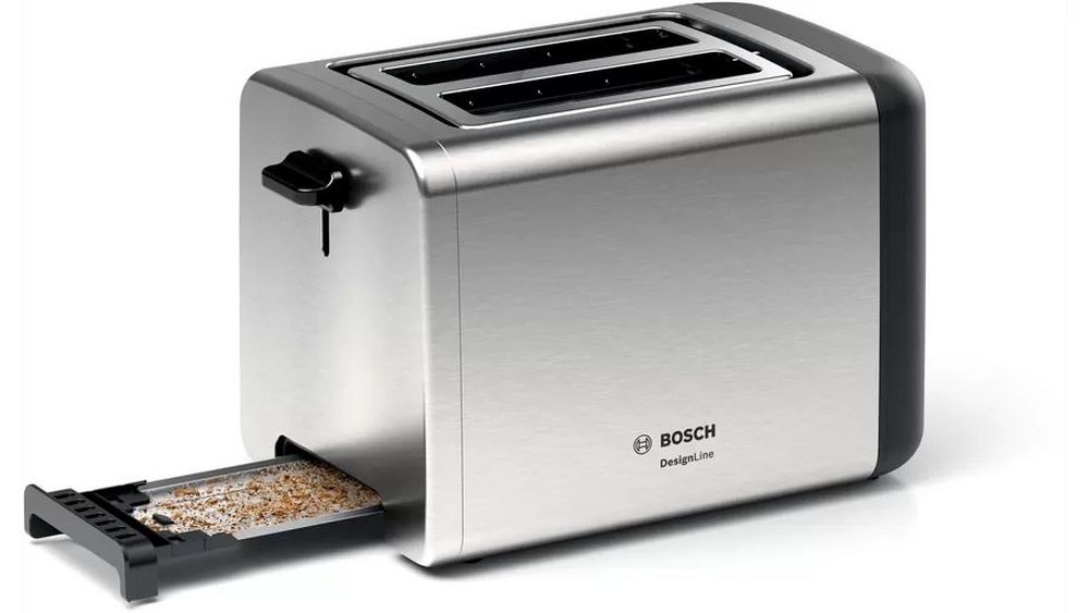 Enjoy the perfect toast morning, noon, or night with the DesignLine 2-slice toaster in stainless steel from Bosch. Thanks to the automatic bread alignment, you’ll achieve even browning every time. The defrost function is ideal for items that have been stored in the freezer and the handy high-lift lever allows easy removal of your toast. Key FeaturesIntegrated warming rackDefrost functionEven toastingProduct Dimensions (H x W x D)19.5cm x 30cm x 17cmCustomise the browning level or stop the process altogether using the cancel button. Plus, the TAT3P420GB comes with an integrated warming rack, so you can enjoy croissants, bread rolls, and other pasty items for a complete breakfast experience.