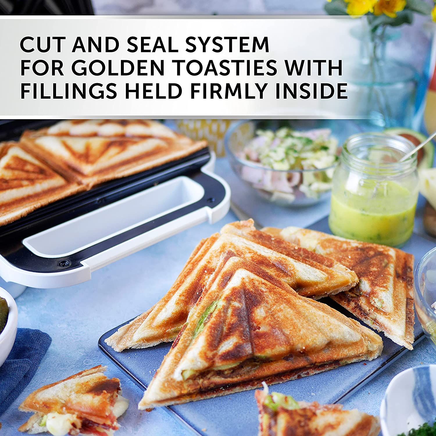 The Breville 2 Portion Deep Fill Sandwich Toastie maker features a specifically designed, longer element, meaning toasties are browned to perfection, while the deep plates allow you to enjoy even more of your favourite fillings. Non-stick plates, with cut and seal system, produce ideally formed toastie triangles and accommodate different bread sizes. The cord storage, handle lock and flat rear panel make compact, upright storage easy.800 watts.Makes 2 sandwiches.Deep fill.Handle locking clip.Cord storage.Manufacturer's 1 year guarantee.