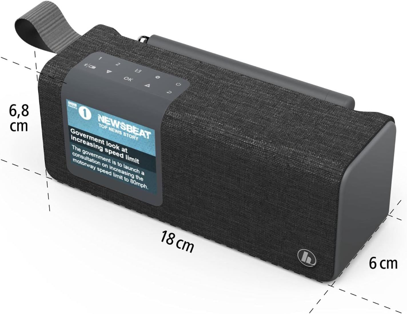 The clearly laid out control panel with non-slip soft keys includes all the important functions of a mobile radio without the frills. This makes operating the digital radio intuitively simple. On the illuminated 2.4-inch colour display, you can read the information transmitted by the radio stations, such as song titles and breaking news. The DAB radio also impresses with its design. With its elegant fabric sections and harmonious round shape, our digital radio can be integrated into any living space. The special surface structure means no unsightly fingerprints remain on the housing. With its compact dimensions, the radio fits in perfectly wherever space is at a premium, for example in the kitchen or on the bedside table.