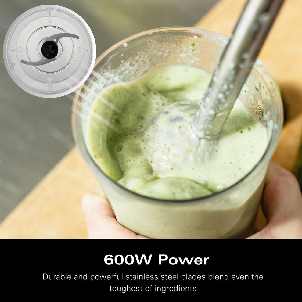 Powered by a robust 600W motor and durable stainless steel blades, it tackles even tough ingredients with smooth precision. The ergonomic design and easy-release handle offer comfort and control with every use.