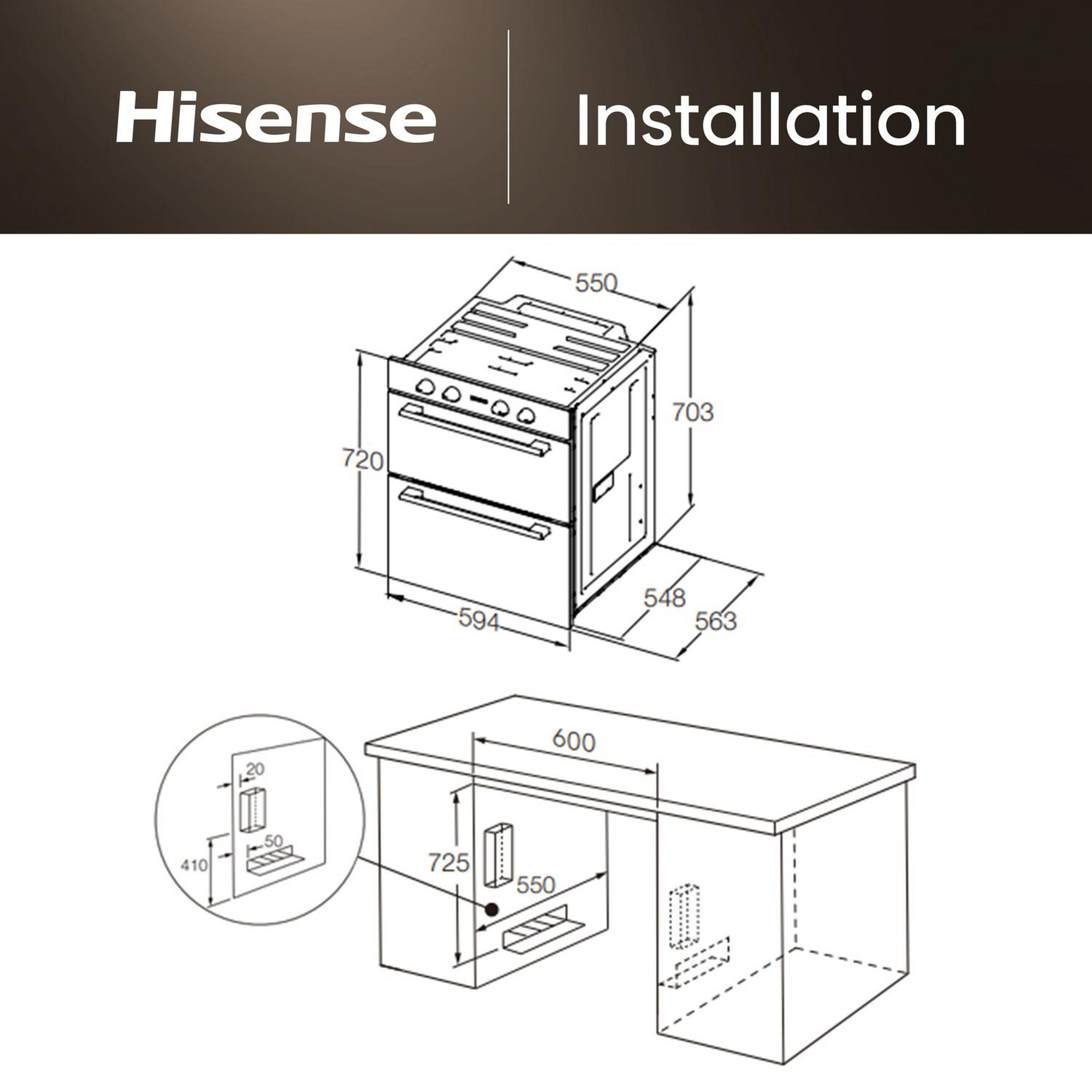Hisense BUD714221CX Built Under Electric Double Oven - Black & Stainless Steel