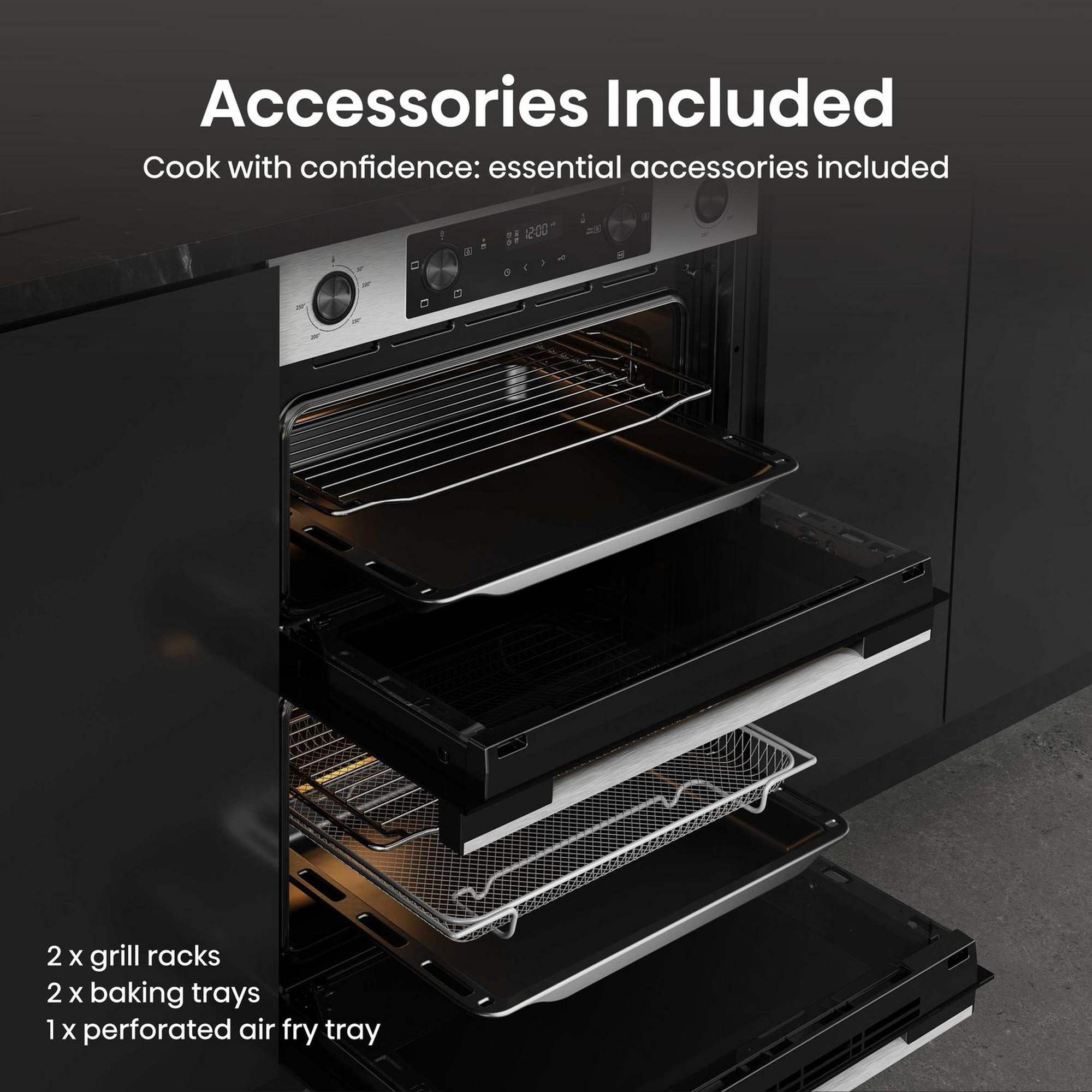 For healthier meal preparation, the integrated AirFry function comes complete with a dedicated perforated tray. Circulating hot air delivers crisp, golden results with little to no added oil—ideal for everything from homemade chips to chicken wings and roasted vegetables. It’s a practical solution for families looking to enjoy their favourites with a lighter touch.