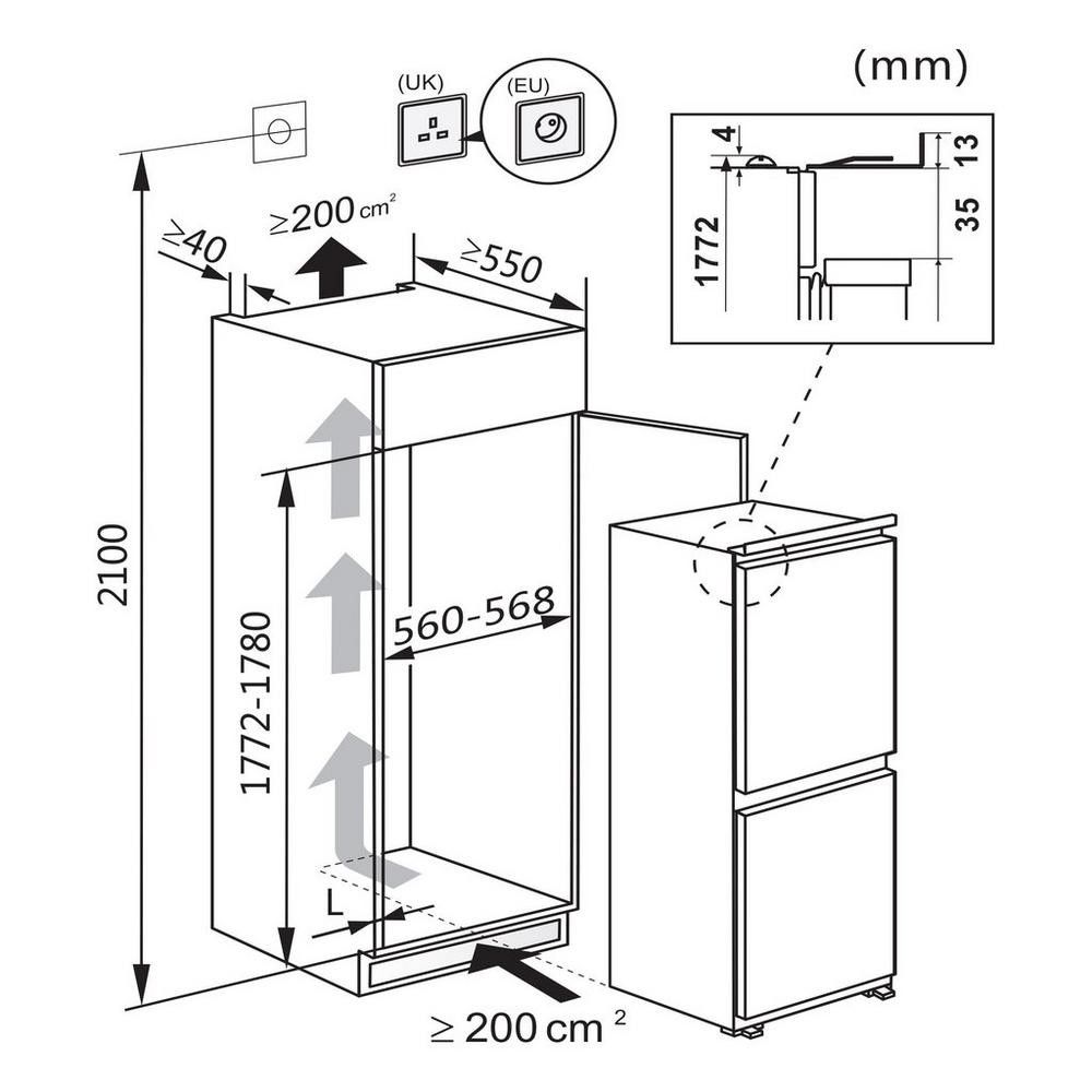 Available in a clean white finish, this built-in Hisense fridge freezer is a perfect fit for any kitchen. A frost-free model, you won’t need to worry about ice building up inside and reducing capacity. Equipped with 246L of space, the RIB312F4AWE is ideal for busy families. The LED display and electronic control can be used to raise or lower the temperature as and when you need to. Reversible doors on this appliance mean it can be placed anywhere in your kitchen. And, it comes complete with a chrome wire rack for storing your favourite tipples.Key FeaturesFrost FreeChrome wine rackLED display and electronic controlProduct Dimensions (H x W x D)177.2cm x 54cm x 54cm