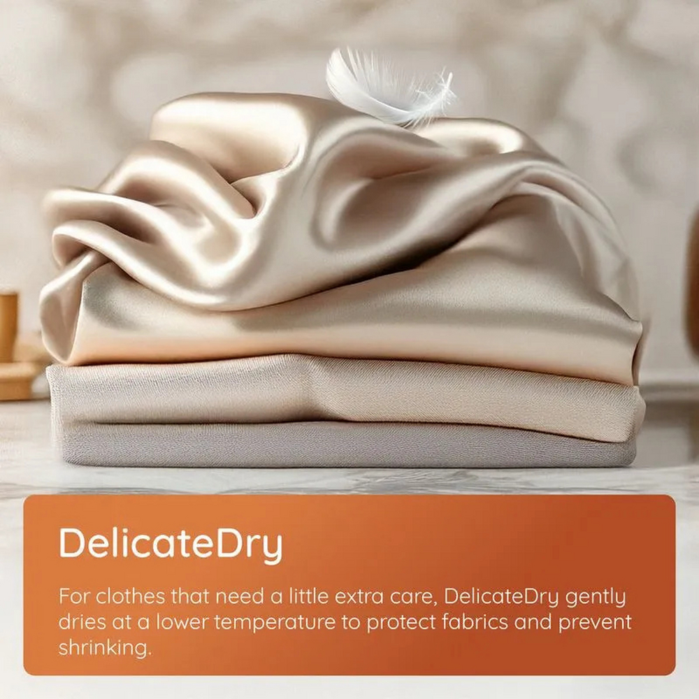 Ideal for busy households, this tumble dryer delivers a gentle yet effective drying performance that helps protect fabrics and maintain their quality. A simple, intuitive control panel makes it easy to choose the right programme for every load, whether you’re drying delicate items or everyday essentials.