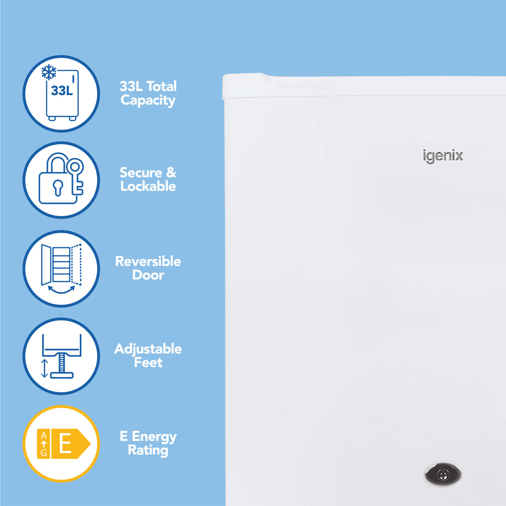 Igenix IG3751 Table Top Freezer with Lockable Door, 33 Litre, White