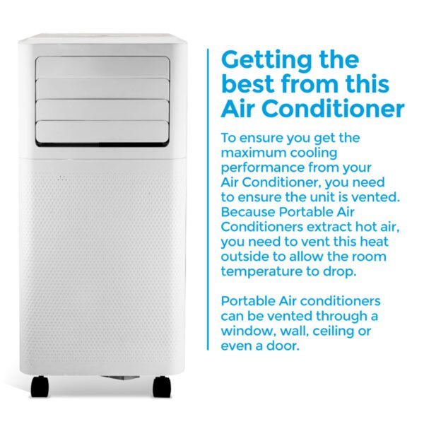 This Igenix unit is more than just an air conditioner. The 3-in-1 unit is a Portable Air Conditioner, Cooling, Fan + Dehumidifier.Igenix IG9907 7000BTU is ideal for small to average sized rooms ranging up to 15 sq. m. It expertly combines style with efficiency and can be placed unobtrusively into any room in the house, conservatory, garage, outbuilding, office, mobile home or caravan. This multifunctional unit offers individual fan, cooling and dehumidifying modes to help create the ideal environment throughout those summer months.Key FeaturesPortable air conditioner that you can vent through your wall, or straight out a window using the exhaust hose providedRemote control and 24-hour timer for added convenienceCompact, portable design with a 1.5 m exhaust hose included2 fan speeds to find your ideal settingGuarantee - 2 years