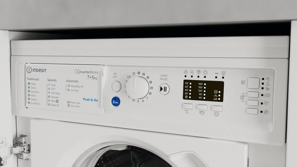Tackle that laundry basket with ease thanks to this built-in washer dryer from Indesit. Featuring a generous 7kg wash and 5kg dry capacity, you’ll have plenty of space for all the family’s clothes. If you need to get a cycle done in a hurry, take advantage of the Push & Go button. Simply press for two seconds and let the machine do the rest. There’s even the Wash & dry 45 option which will wash and dry a small 1kg load in 45 minutes. What’s more, the BIWSIL75148UK comes with Water Balance Plus which helps you save money on your energy bills. It adapts the amount of water used according to each cycle’s need, ensuring minimal wastage.Key FeaturesPush&GoWater Balance+Wash & Dry 45Product Dimensions (H x W x D)81.5cm x 59.5cm x 54.5cm