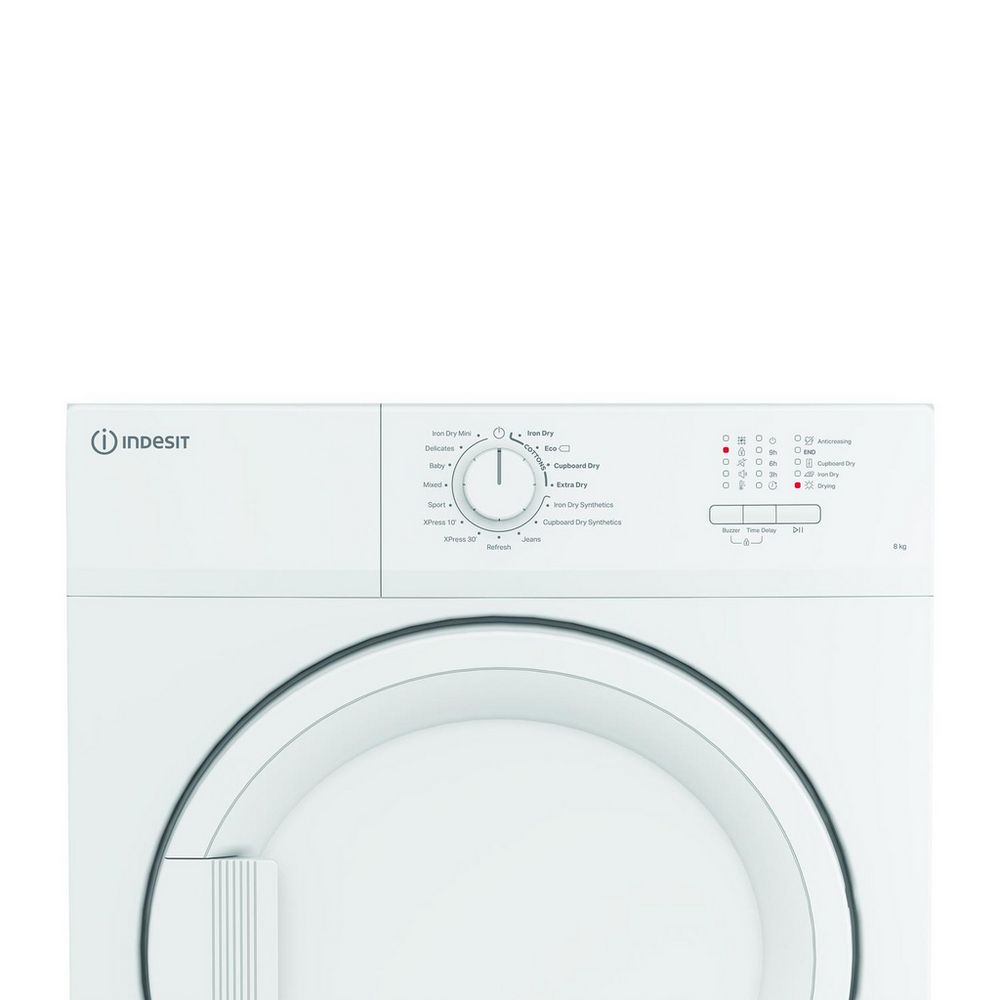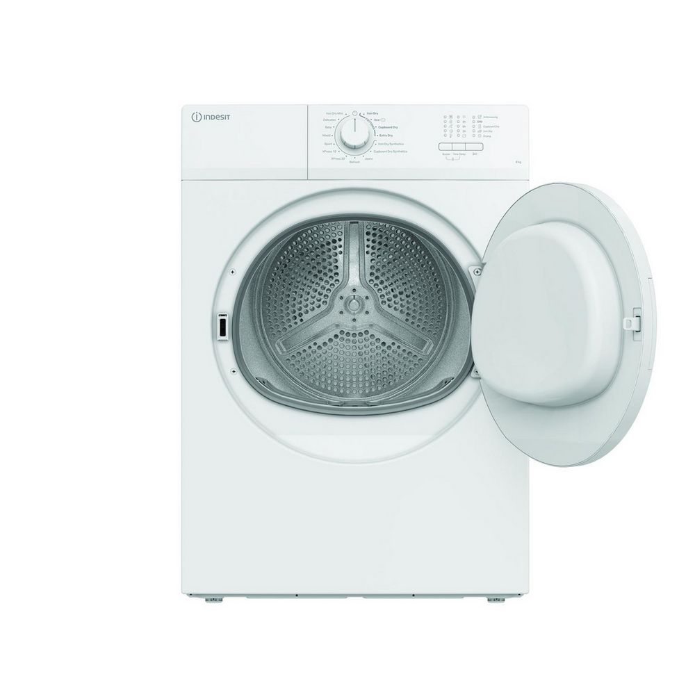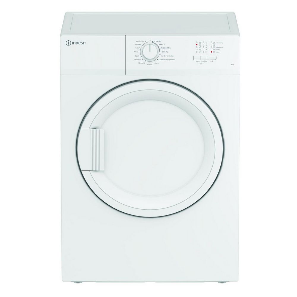 Take care of the family laundry with this 8kg vented tumble dryer from Indesit.Key FeaturesTwo Xpress cyclesIron Dry Mini8kg capacityProduct Dimensions (H x W x D)84.6cm x 59.7cm x 58.4cmWith 16 programmes to choose from, it’s the perfect appliance for every household. Two Xpress cycles allow for rapid drying when you're in a hurry, and the Iron Dry Mini program quickly dries a few items ready for ironing. This model also includes a child lock ensuring peace of mind, while the LED display and single control knob make operation easy.Experience with the CYDA81WWGLUK a reliable and efficient tumble dryer that will make laundry day a breeze.