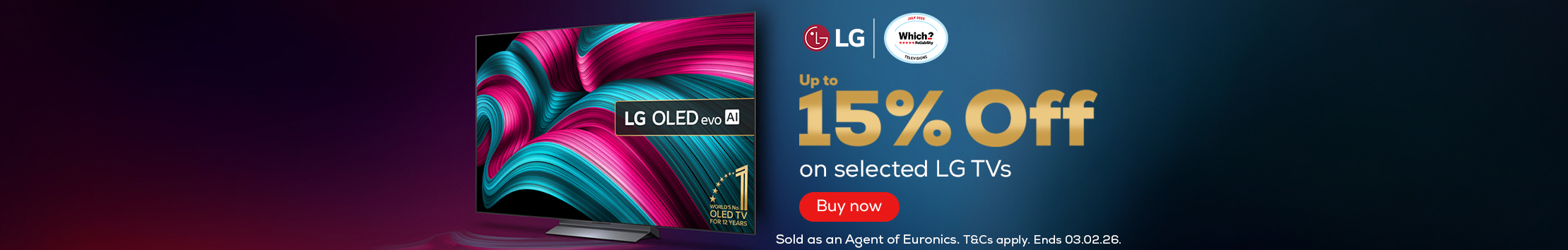 Upgrade your home viewing for less with LG. For a limited time, get up to 15% off selected LG TVs at Euronics - just choose your model and use code LG15OFF to enjoy the saving at checkout.