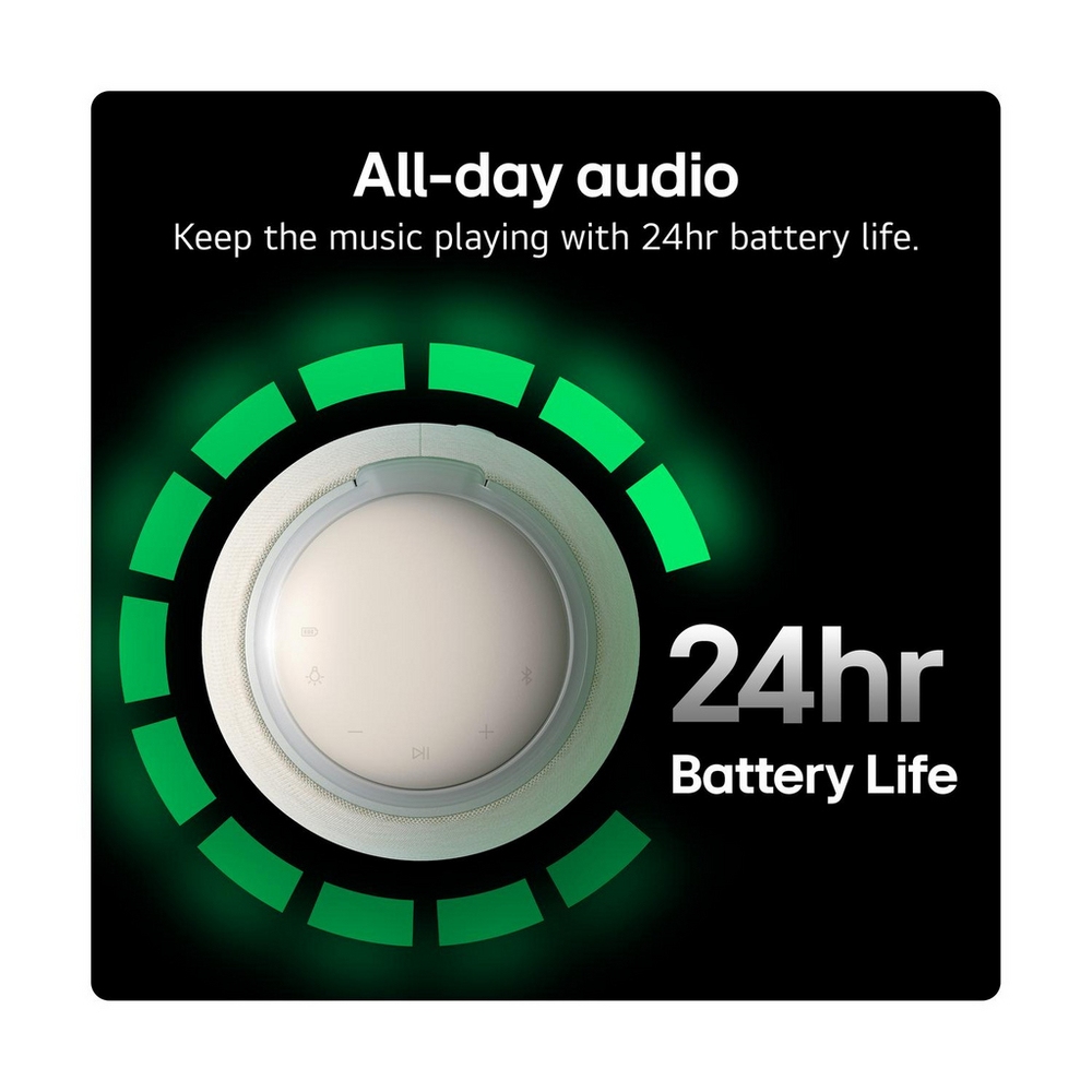 Designed for music lovers who appreciate both performance and convenience, the LG Xboom 360 features a compact, lightweight design for easy portability. Take it wherever you go and enjoy consistent, room-filling sound without compromise. The dynamic lighting responds to your music, helping you create a personalised atmosphere that enhances every listening moment. With intuitive controls and seamless Bluetooth connectivity, enjoying your favourite tracks is simple and effortless.