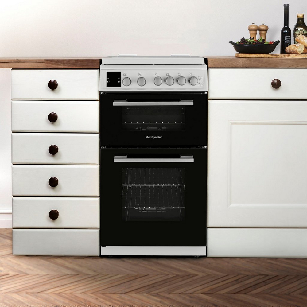 Cook with confidence and style with the Montpellier MDOG50LW, a sleek 50cm double gas cooker in black designed to bring flexibility, convenience, and efficiency to your kitchen.