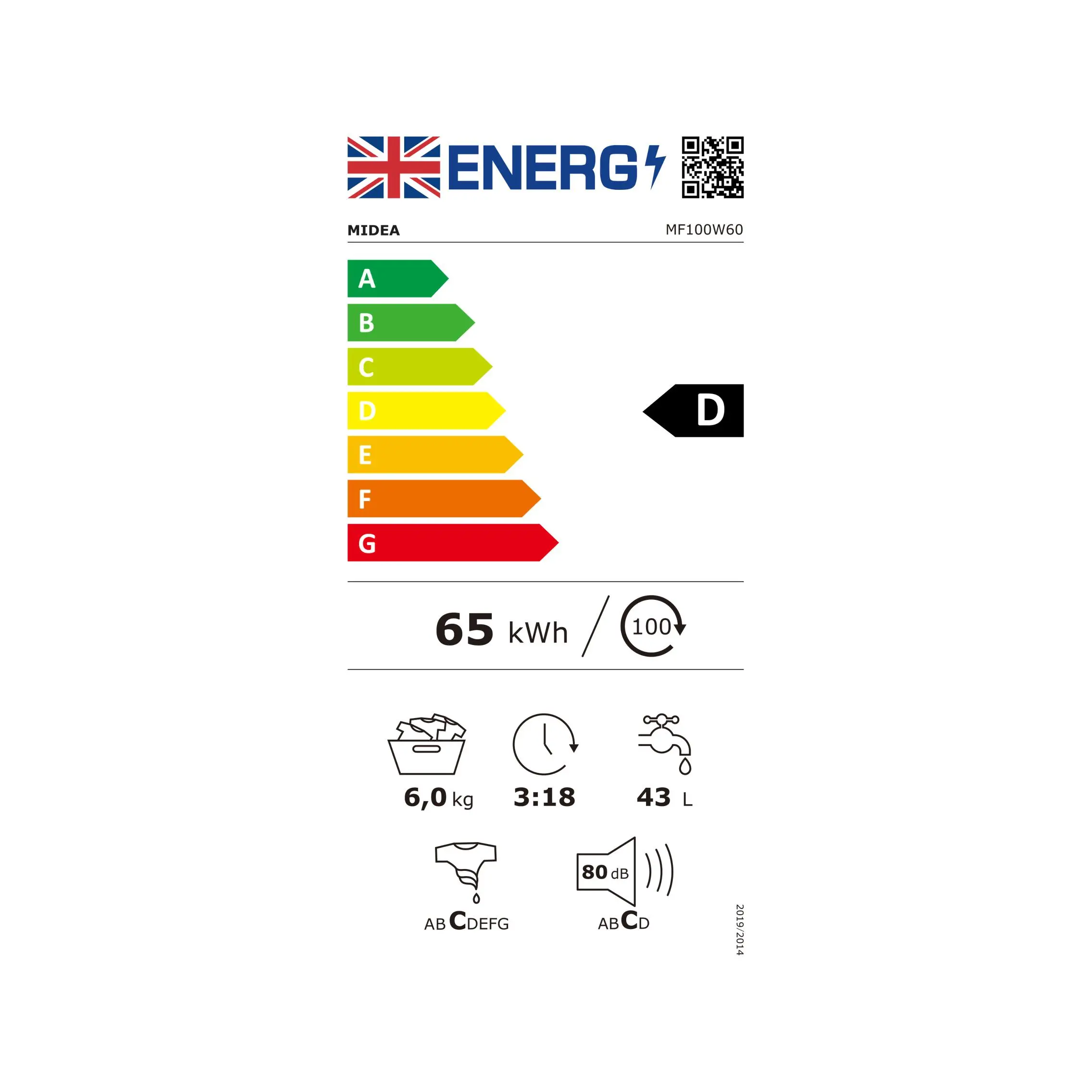 MIDEA MF100W60 Freestanding Washing Machine – 6kg Load, Lunar Dial & LED Display, White