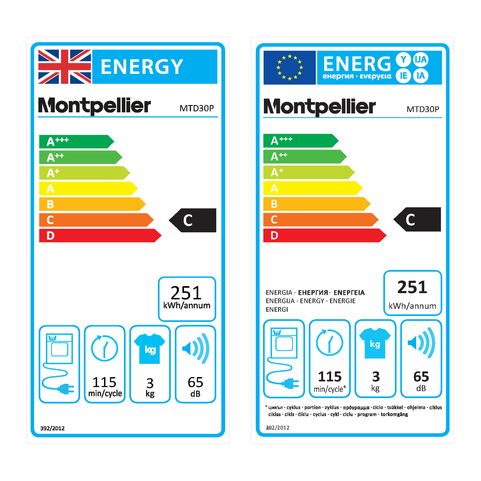 The Montpellier MTD30P comes with a vent hose for straightforward installation, and an elbow connector is included for flexible venting options when placing the dryer against a wall. A separate wall-mounting kit is available to save even more space. Clear instructions are included in the user guide for easy, hassle-free setup.