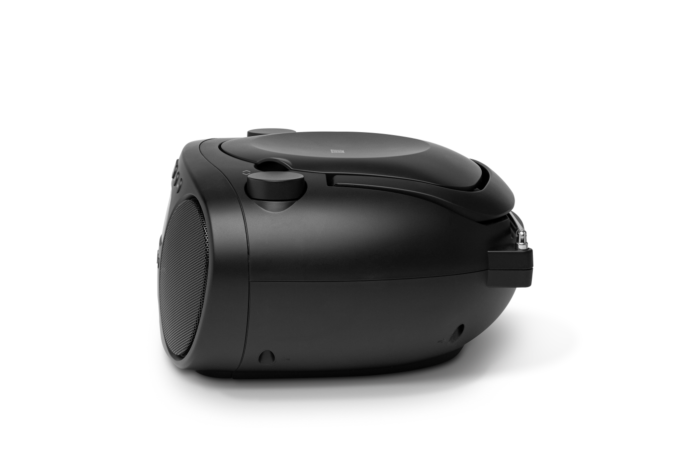 Enjoy your favorite music and radio stations on the go with this compact and easy-to-use FM/AM radio boombox. Featuring a built-in CD player, dual stereo speakers for crisp, clear sound, and a headphone jack for private listening, it's perfect for any setting. Whether you're at home or on the move, this sleek boombox offers the flexibility of mains or portable power.