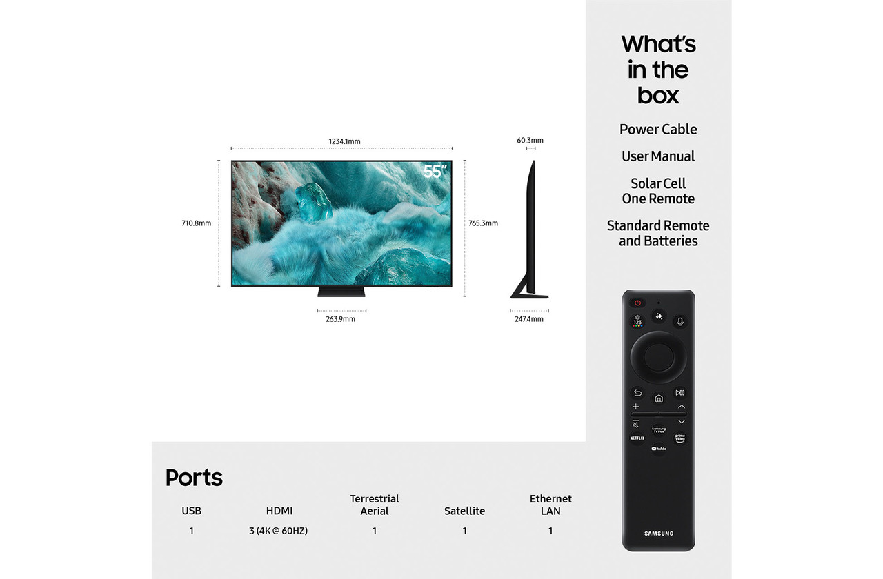Backed by a 5-year warranty (registration required), the Samsung QE55Q7F5AUXXU offers lasting reassurance alongside its remarkable performance, style, and smart features.