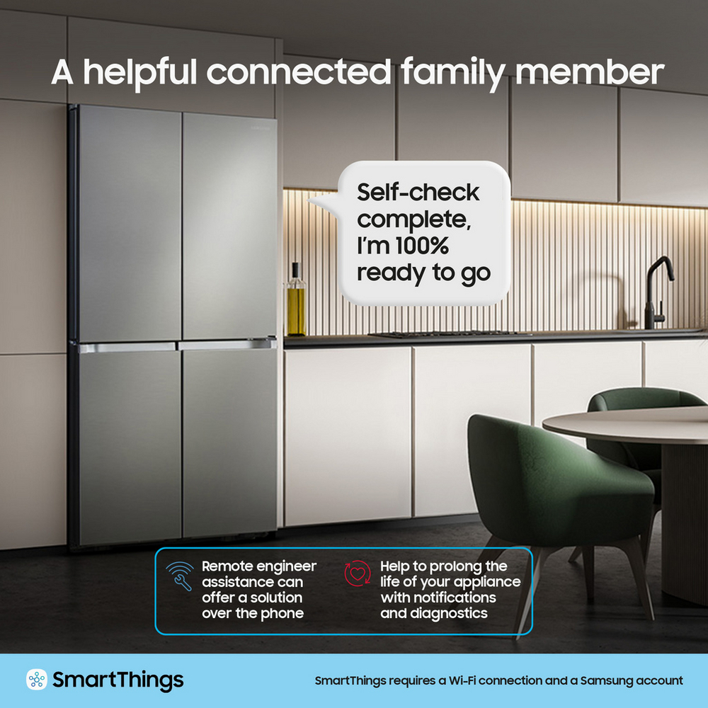 Thanks to Samsung’s All-Around Cooling system, chilled air flows evenly across every shelf, keeping your food fresher for longer while preventing odour transfer between compartments. It’s also incredibly energy-efficient, helping you cut down on your energy bills without compromising on performance.