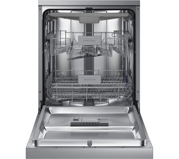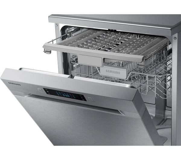 Experience effortless cleaning with the SAMSUNG Series 6 DW60M6050FS Full-size Dishwasher. Designed to fit seamlessly into your kitchen, this sleek stainless steel appliance combines modern technology with quiet, efficient performance. Its Auto Wash and multiple wash programmes ensure every dish, glass, and pan is spotless, while the A++ energy rating helps save both water and electricity.