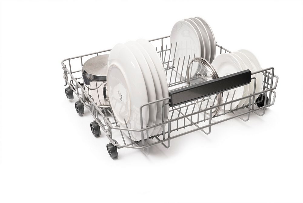 There are also fully foldable spikes in the upper basket and half of the spikes are foldable in the lower basket for complete flexibility. Plus, the slidable third rack is ideal for cutlery and smaller items. Operating the DWSF0115FSBG is simple too. It comes with a dial and full-colour LED touch controls, a child lock, and a time delay. Available in graphite, this dishwasher is perfect for every home – it looks great too.