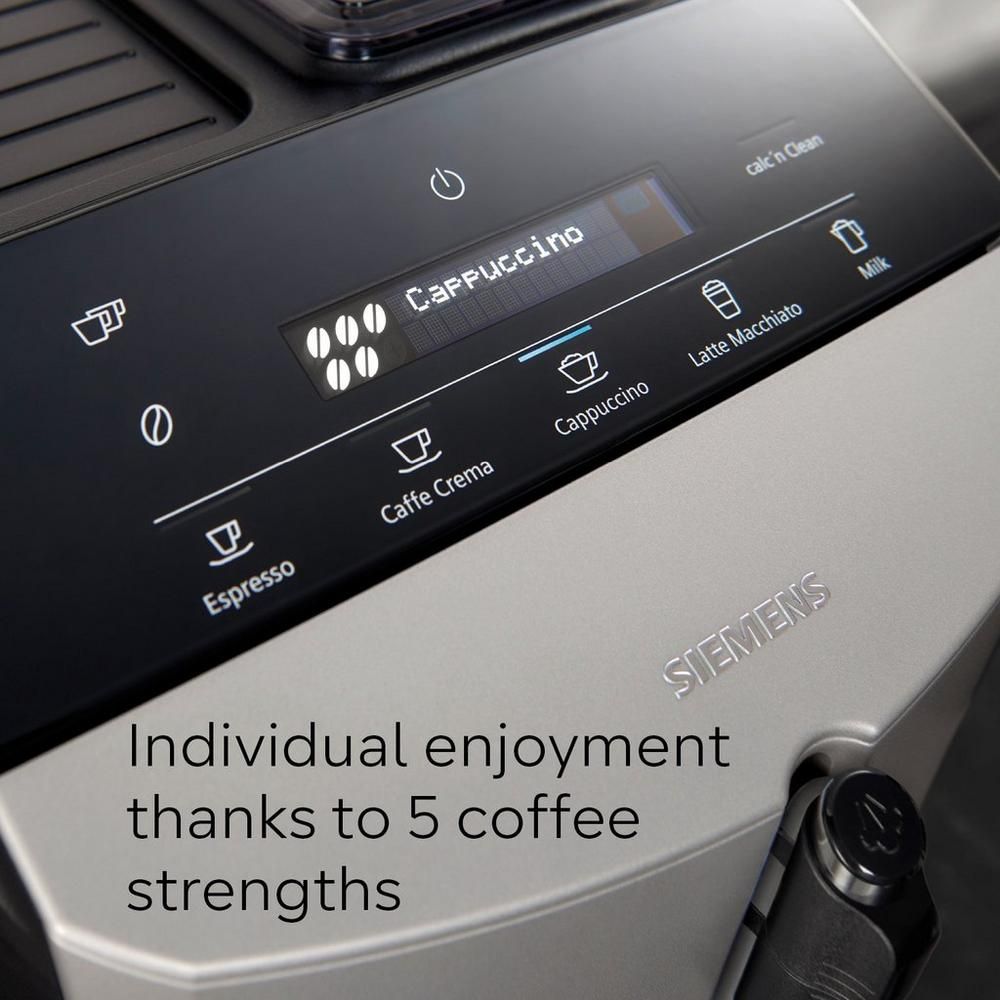 Experience barista-level coffee at home with the Siemens TF303G07 Bean to Cup Coffee Machine. This fully automatic, freestanding coffee machine combines German engineering, intuitive technology, and sleek Inox Silver Metallic design to deliver café-quality beverages with a single touch.