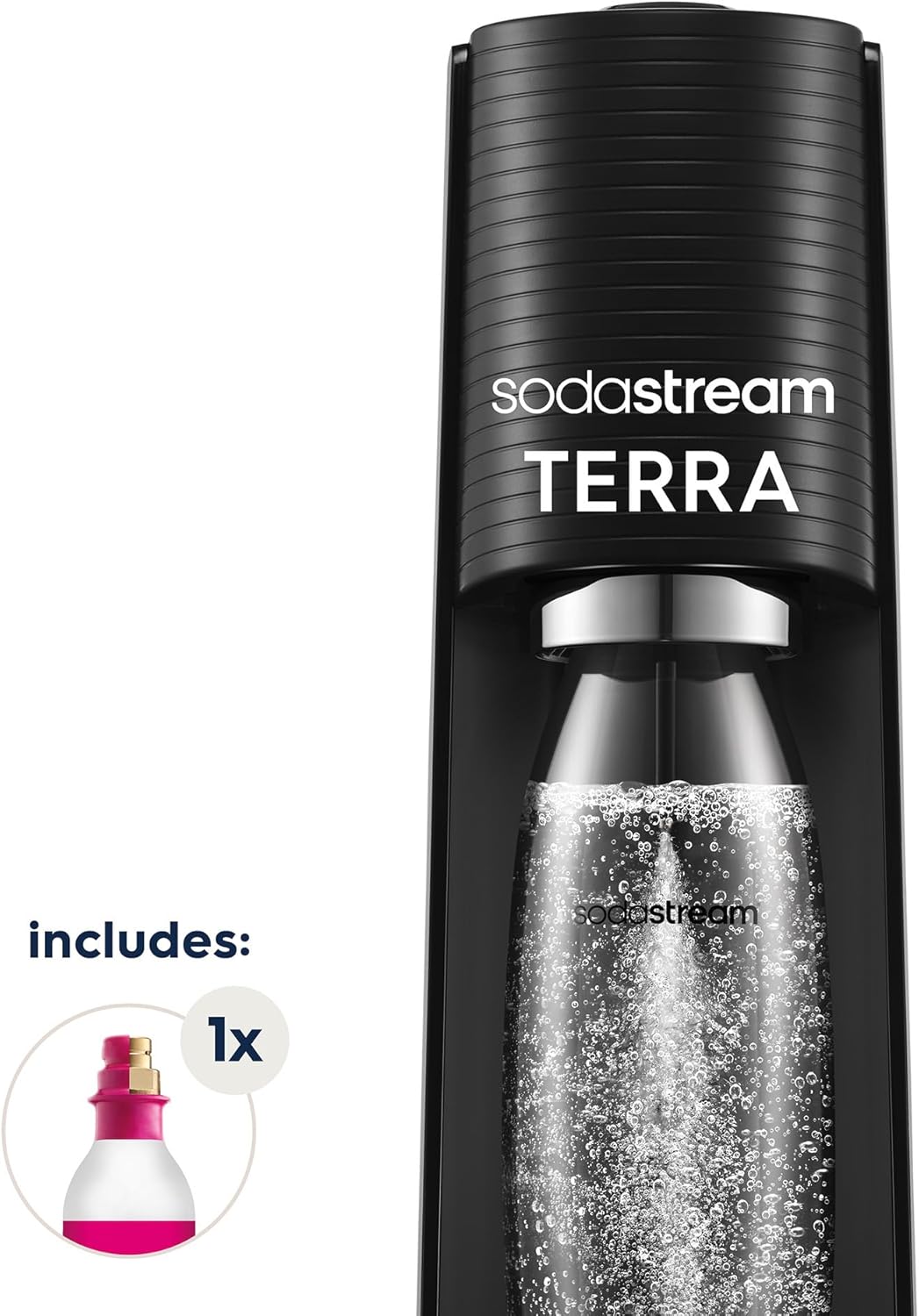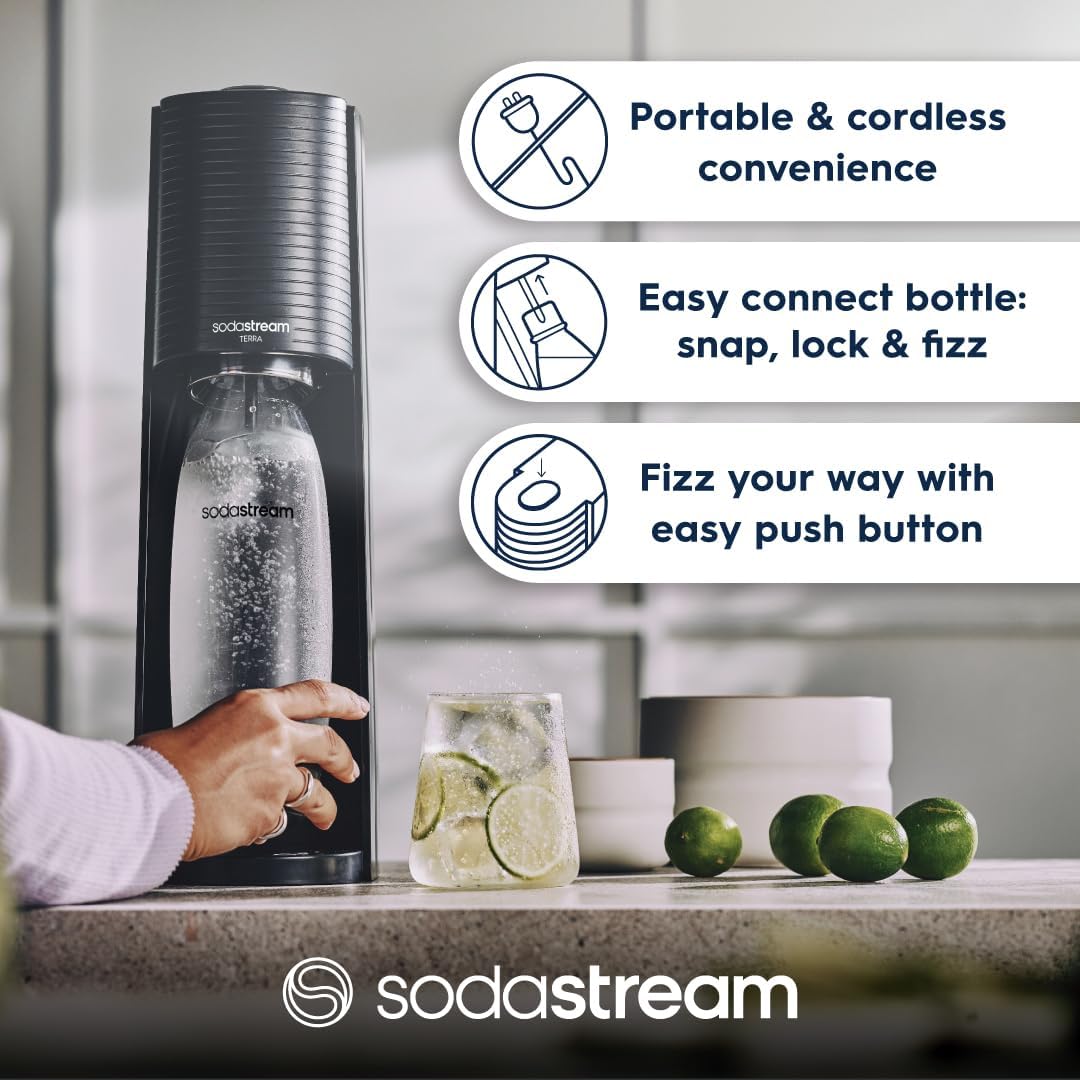 Elevate your daily routine with the SodaStream Terra Black—the effortless, sustainable, and flavourful way to enjoy sparkling drinks at home.