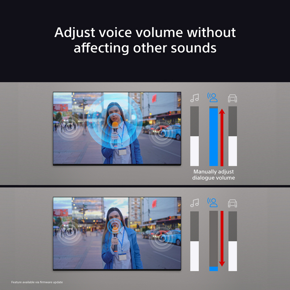 Sony is the first to feature dual up-firing beam tweeters, creating an immersive, “sound-from-screen” experience that mimics the feeling of a movie theatre. Paired with a Sony soundbar, you can transform your living space into a true BRAVIA Theatre.