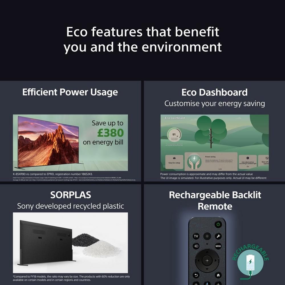 Experience breathtaking pictures and a huge variety of viewing choices on this Sony 85” BRAVIA 9 QLED 4K smart TV. Featuring a Mini LED screen, the K85XR90PU will deliver an incredible dynamic range, the deepest blacks, and the most dazzling lights – the same technology used by filmmakers. If that’s not all, this TV is the first with two up-firing beam tweeters for sound-from-screen – just like the cinema. Key FeaturesQLED Mini LED technologyIncredible cinema soundSmart featuresYou’ll be able to keep the whole family entertained too thanks to an array of smart features including apps, streaming services, and connection ports. You can even stream from your smartphone or tablet with Chromecast built-in. What are you waiting for?