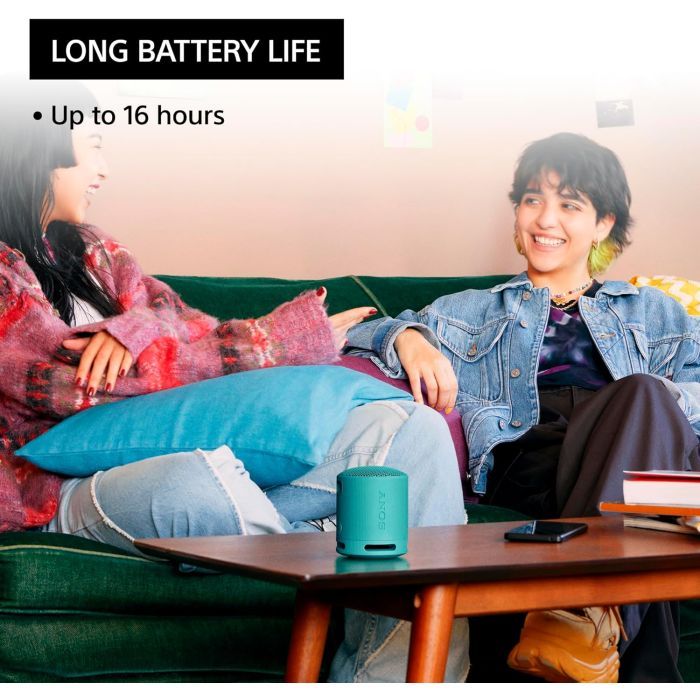 The XB100 has up to 16 hours of battery life, so that you and your friends can listen to music all day and into the night. The remaining battery percentage shows clearly on your smartphone when the XB100 is connected, letting you know when it's time for a recharge.