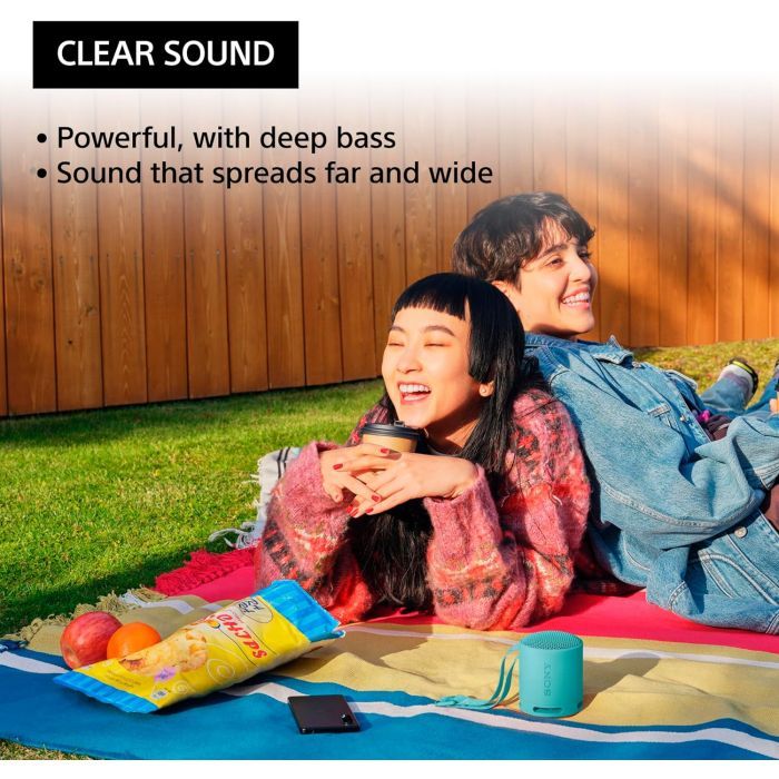 The compact Sony SRS-XB100 Compact Bluetooth Wireless Speaker has powerful sound in a portable, durable body. Packed with technology to enhance music and filled with usability features, this is a little speaker ready to fit into big lives.The SRS-XB100 speaker provides powerful, clear, expansive sound in a small, portable and durable body. Despite its size, it's packed with technology, including a Sound Diffusion Processor for spreading sound, a passive radiator for deeper bass and an off-centre diaphragm for a clear sound, even at high volumes.