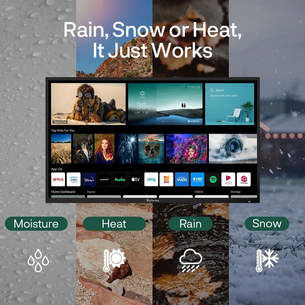 Make the most of your outdoor space with the Sylvox 65" Outdoor TV — bold, bright, and built to perform rain or shine.