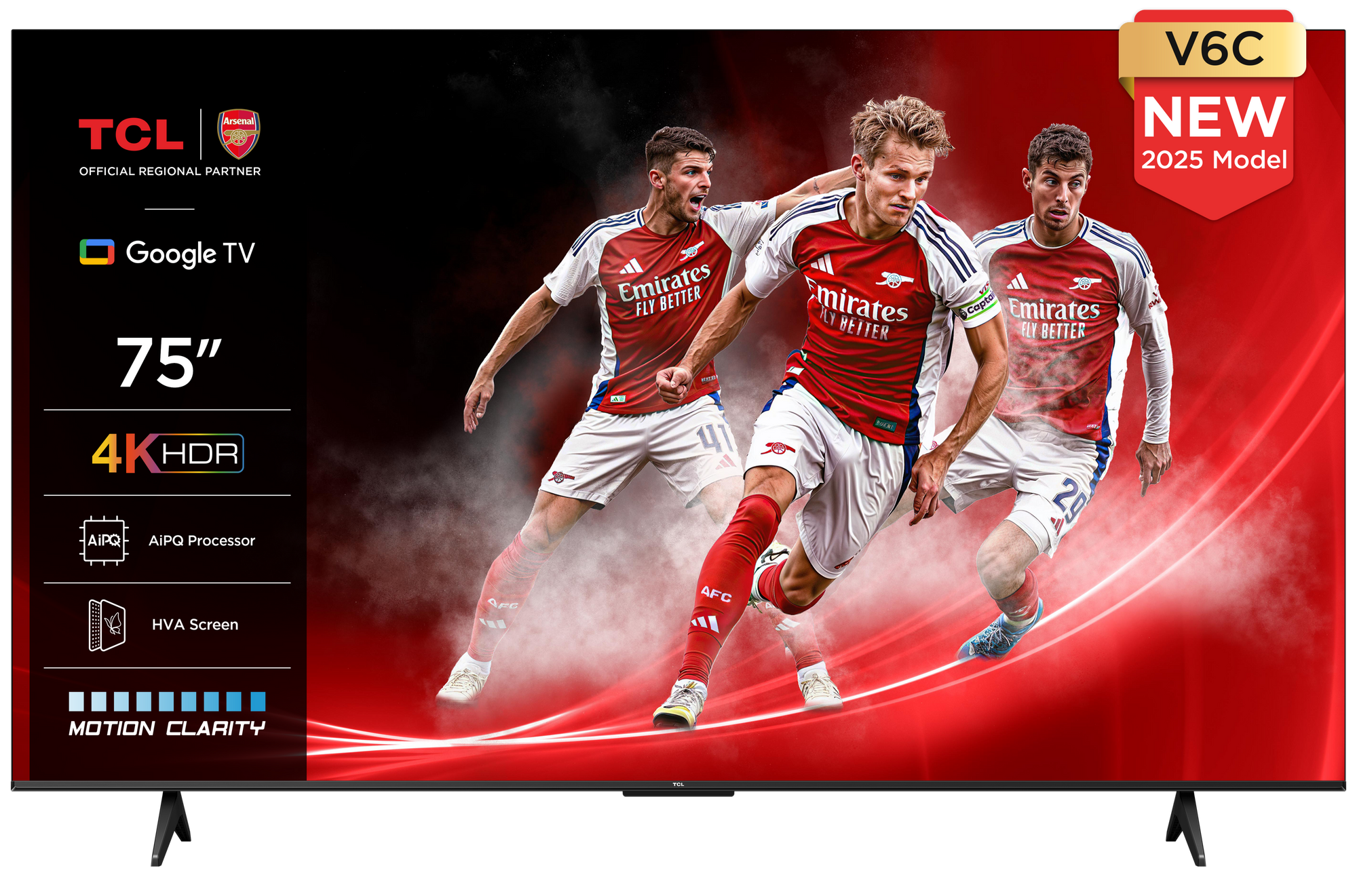 Bring the big screen home with the TCL 75V6C-UK, a powerful 75" 4K Ultra HD TV designed for immersive, cinematic viewing. With Direct LED technology, it delivers striking contrast and sharp clarity across the expansive display – whether you’re watching films, sport, or gaming.