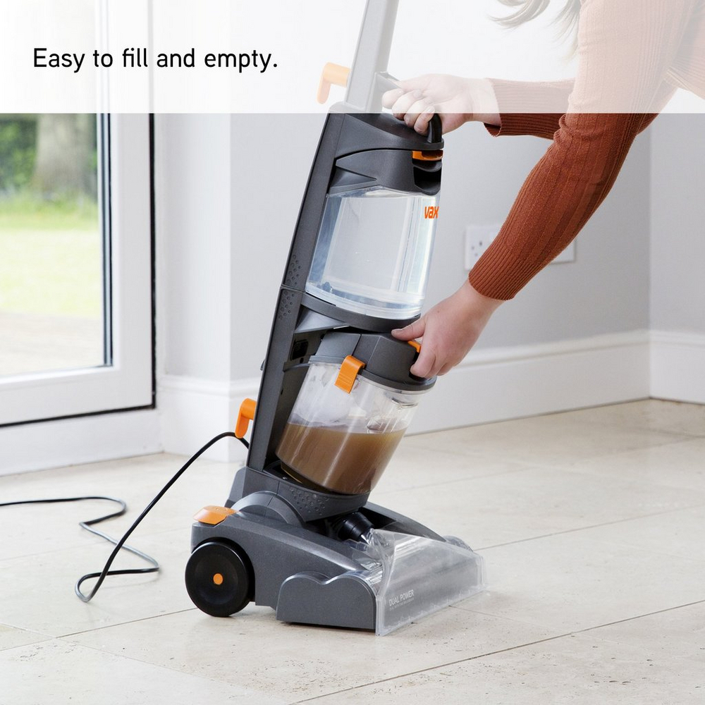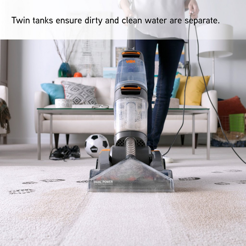 Revive your carpets with the Dual Power carpet cleaner from VAX. Experience twice the cleaning power with its dual rotating brush bars, designed to tackle deep, stubborn dirt. The 30cm wide cleaning head ensures a thorough clean by reaching right into the fibers of your carpets. Thanks to the twin tank technology, clean and dirty water stay separate, so you can clean without worrying about cross-contamination. Emptying the tanks is hassle-free, and the screw cap makes solution measuring easy. At just 5.8kg, the W86DPB is lightweight and portable, making it simple to move from room to room or up and down stairs, delivering a powerful clean every time.