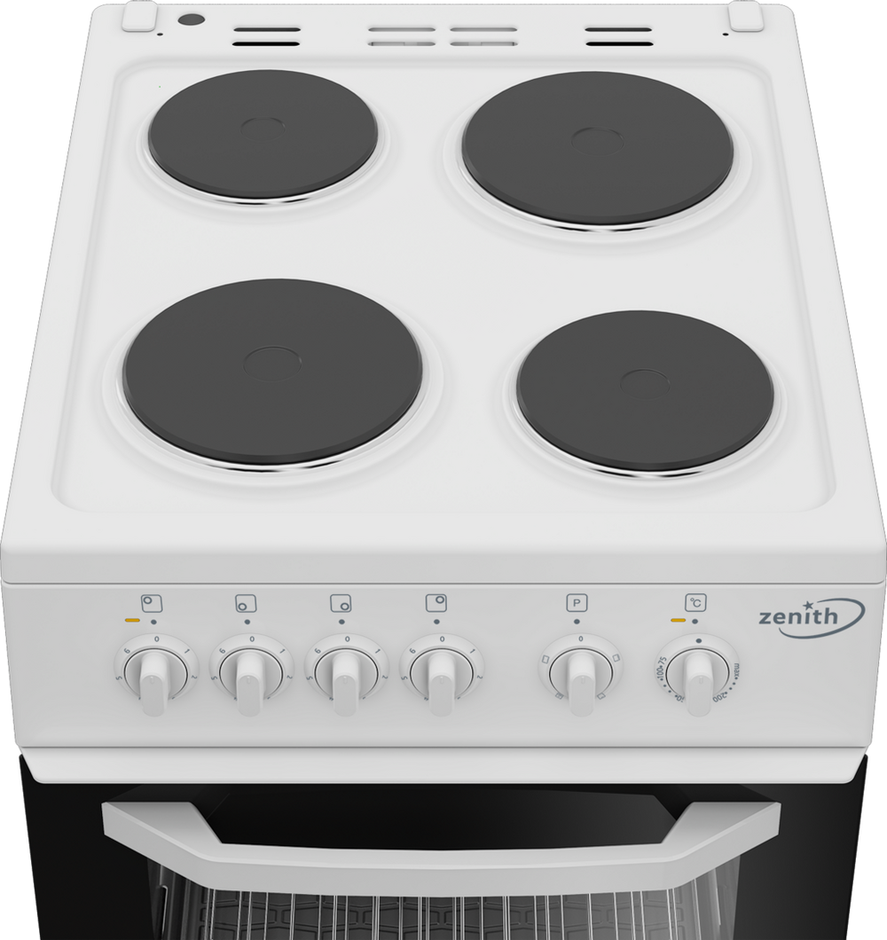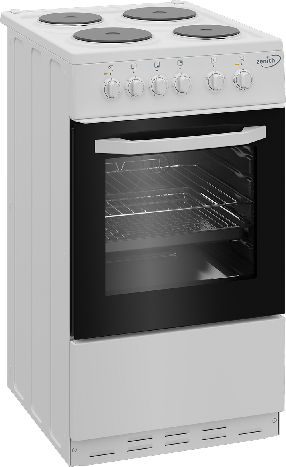 Discover the Zenith ZE503W, a versatile three-in-one appliance featuring a conventional oven, a four-zone solid plate hob, and a fixed integral grill. Exclusively available at Euronics and Agent stores, you won’t find this freestanding electric cooker anywhere else.